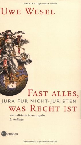 Soll man einen Bestseller auch noch preisen? Uwe Wesel: "Fast alles, was Recht ist - Jura für Nicht-Juristen". In diesem Falle unbedingt, denn Wesels mühelos lesbares Buch ist nicht nur ein schlauer Jura-Lehrgang für den Laien gut zu lesen (Was ist Zechprellerei? Tätitge Reue? Emazipation der Frau per Gesetz?). In jedem Kapitel gibt es mehrere Beispiele aus der Rechtssprechung der Obergerichte, sogenannte leading cases, an denen sich auch die Juristen orientieren. Sie werden nicht nur dargestellt, sondern auch analysiert und in einen erklärenden Kontext eingebaut. Für die beiden letzten Kapitel schließlich hat Uwe Wesel gegensätzliche Themen als Beispiele ausgewählt: Ein praktisches Buch über das Arbeitsrecht. Und ein spannendes, theoretisches über 'Recht und Gerechtigkeit'. Dieses Buch ist nicht nur ein tolles Sachbuch, sondern auch ein großer literarisch-kultureller Streifzug. Mit vielen amüsanten und frappierenden Anspielungen, teils offen, teils verdeckt... Wenn man dann noch liest, wie Wesel seiner eigenen Wissenschaftszunft die Hiebe austeilt, so erkennt man wieder einmal: in Deutschland sind die guten Juristen die gebildetsten Leute. (Dies ist eine Amazon.de an der Uni-Studentenrezension.)